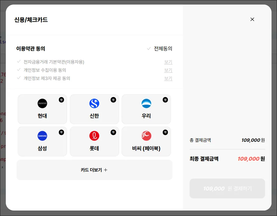 결제 브릿지 페이지는 상대적으로 동적인 요소들을 많이 가지고 있는 제품이며, 특히 각 UI 요소를 클릭했을 때 사용자가 느끼는 불편함 없이 최대한 부드럽게 동작할 필요가 있었습니다. 따라서 서버 사이드에서만 렌더링되는 템플릿 위주의 스택을 선택하기보다는, 적정량의 JS를 활용하여 우수한 사용자 경험을 제공하는 방향이 적절하다고 판단했습니다.