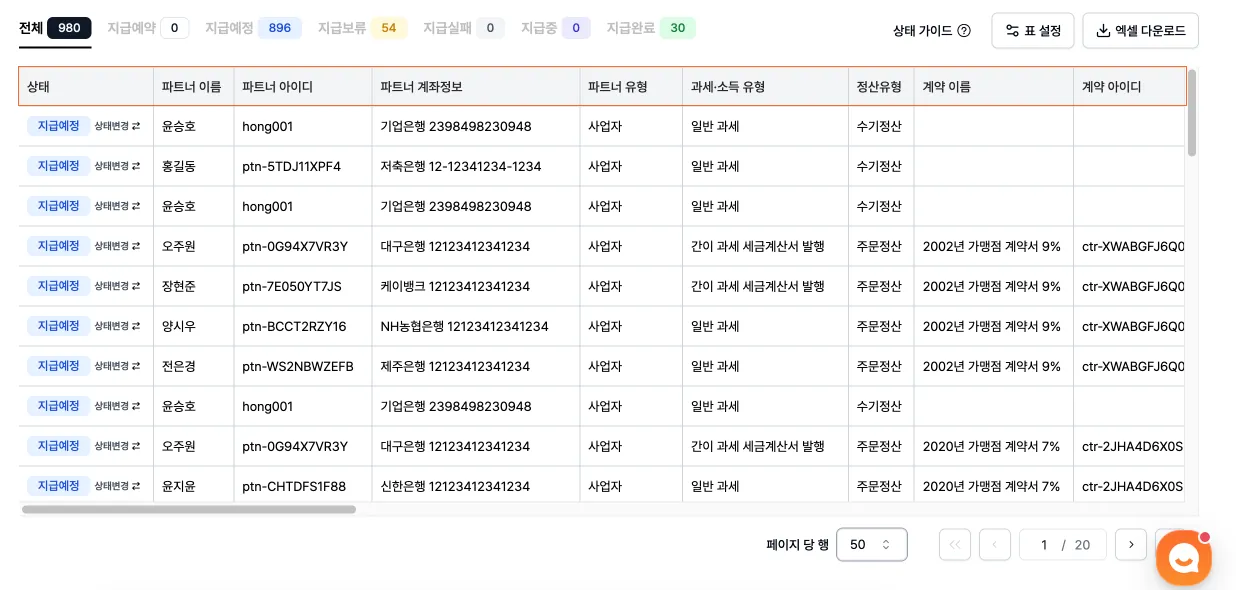 안녕하세요 파트너 정산 자동화팀입니다.